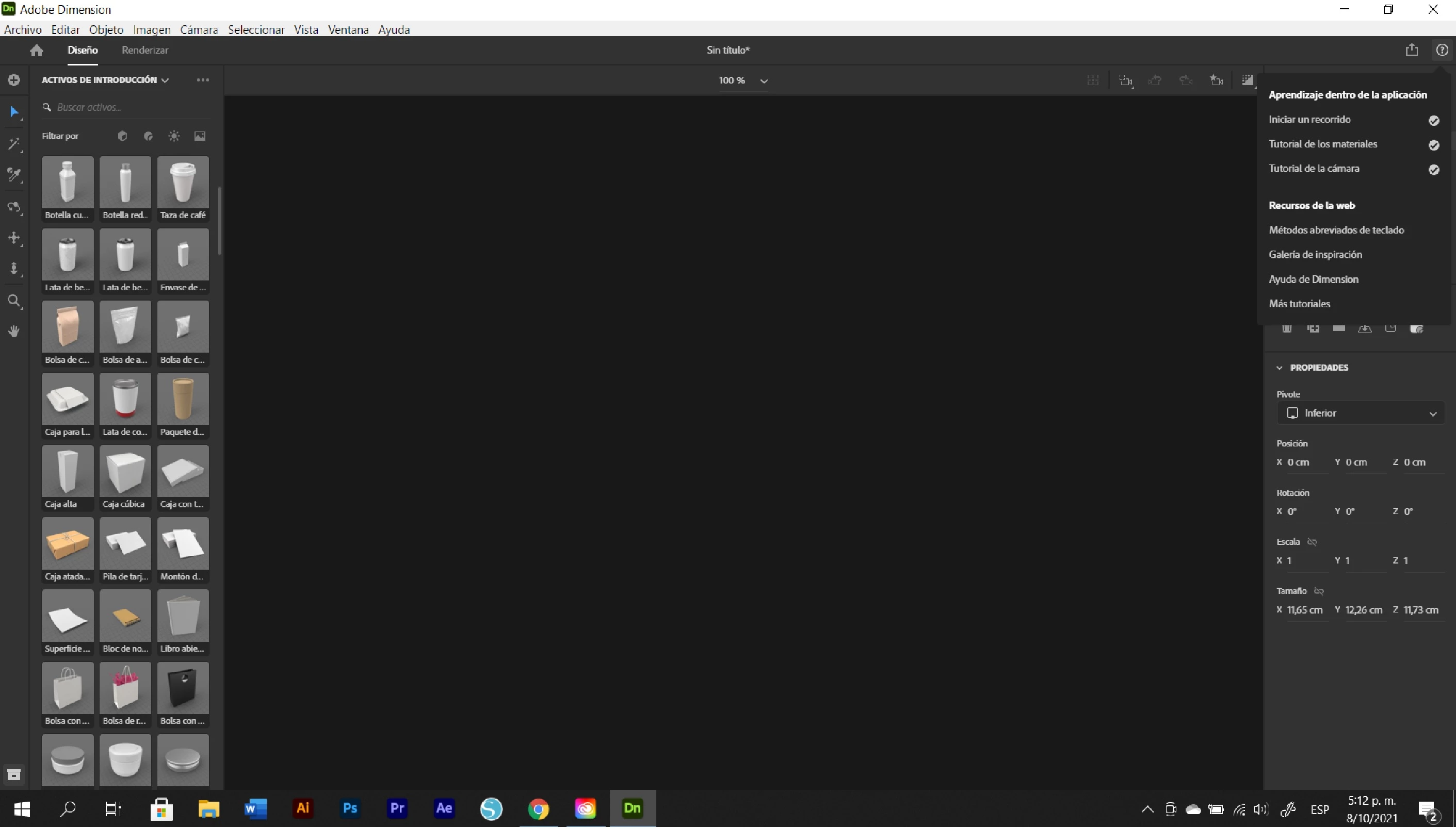 Buenas noches, a la hora de abrir adobe dimensión y poner un objeto la mesa de trabajo queda completamente negra y no se ve nada que puedo hacer?
