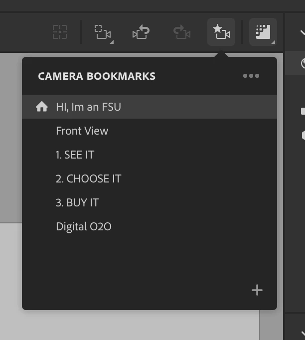 Adobe Dimension camera bookmarks (deleted) show up