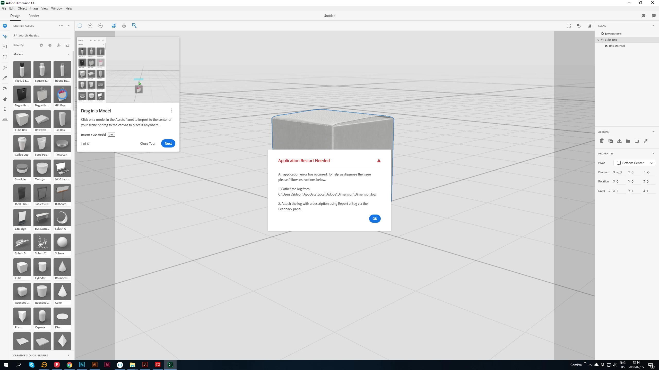 Adobe Dimension CC Crashes