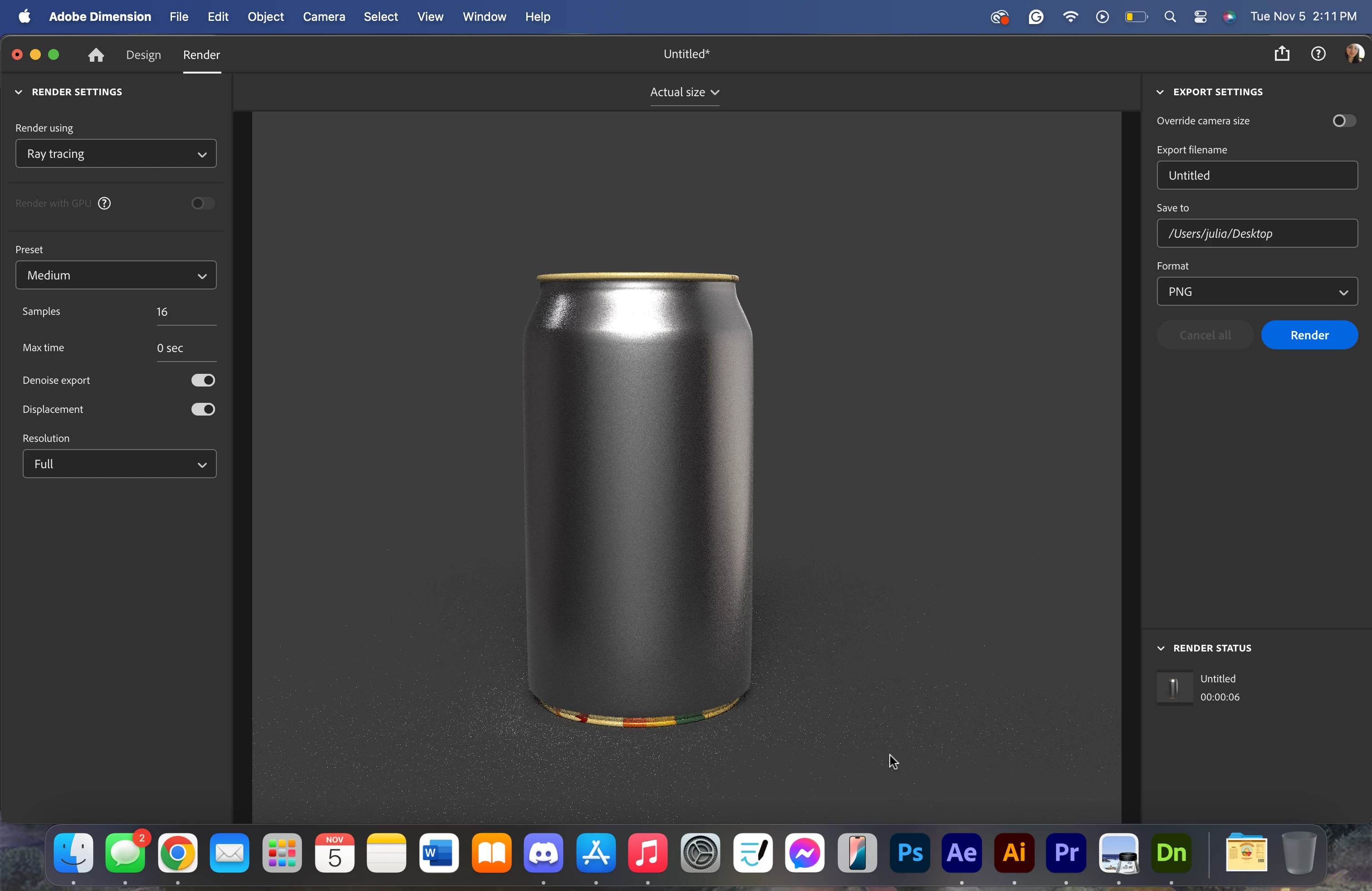 Adobe Dimension isn't rendering what is in the editor?