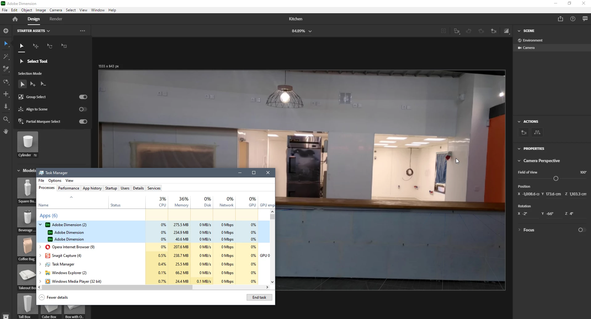 Adobe Dimension keeps freezing