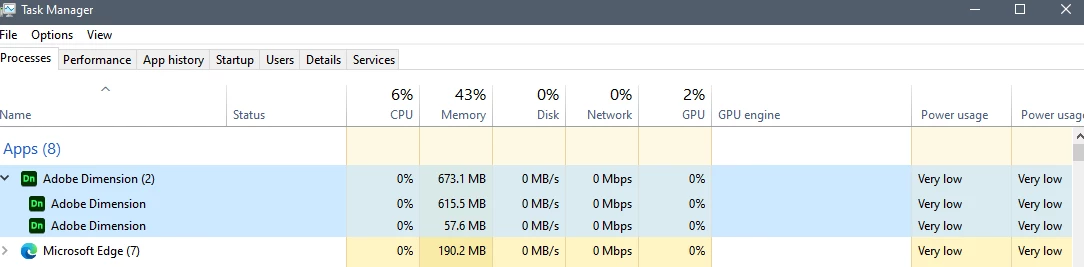 I've been using Adobe Dimension much this week, and I often have some struggles because it freezes for no reason. Especially when I save or try to export the file. And then I can't even close the software, I have to to close it from the task manager.