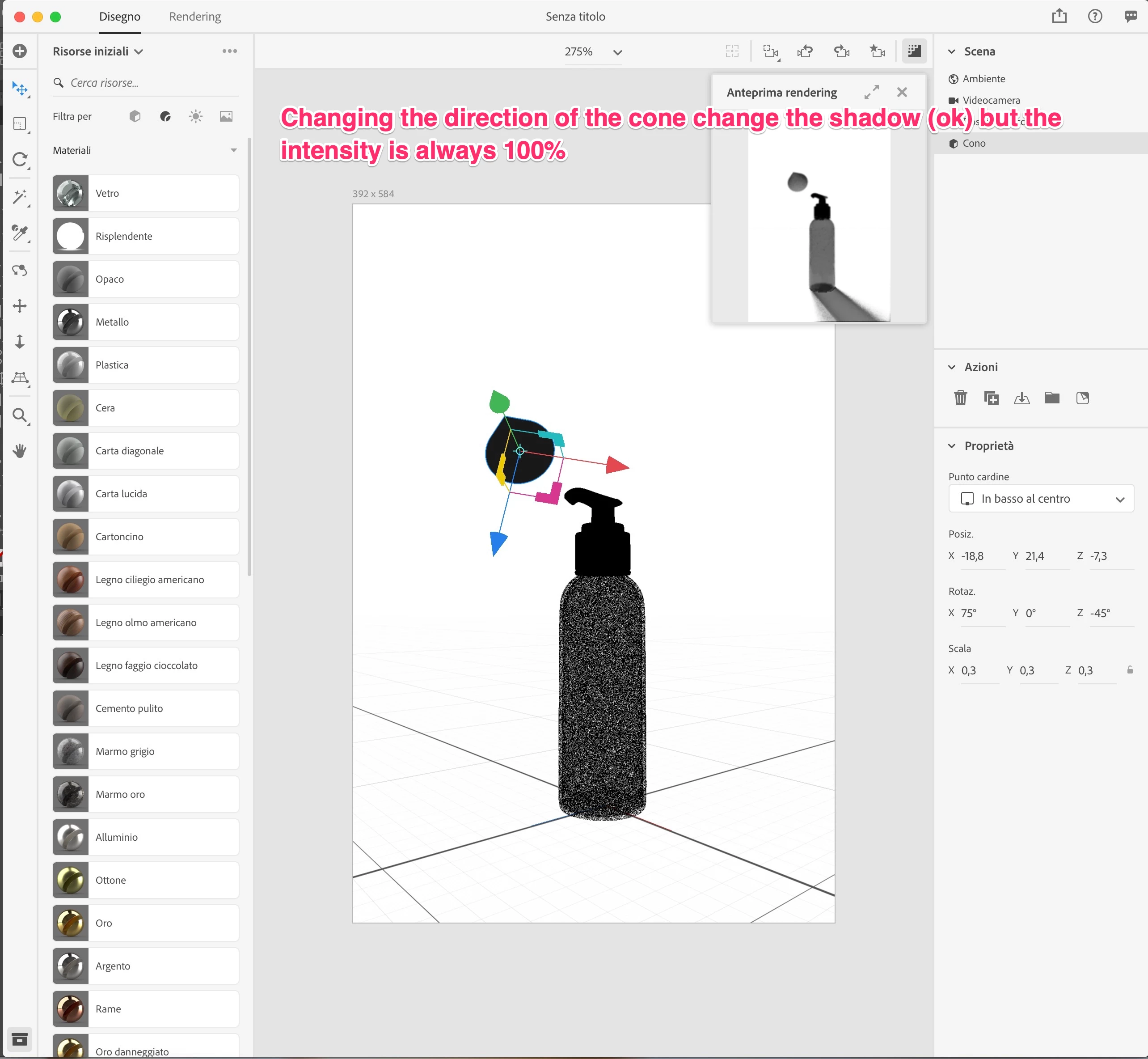 The intensity of the light isn't adjustable (since I put 1% the light is always full) and isn't directional (it seems like an ambient occlusion).