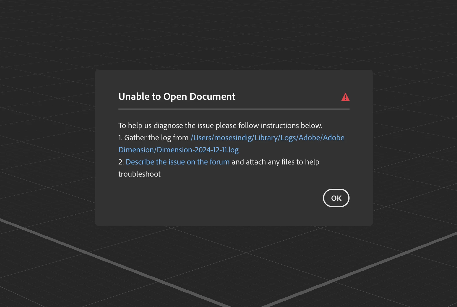 Adobe Dimensions wont' open any of my recent files, i get the error message below, did anyone else have this and how can i fix it?