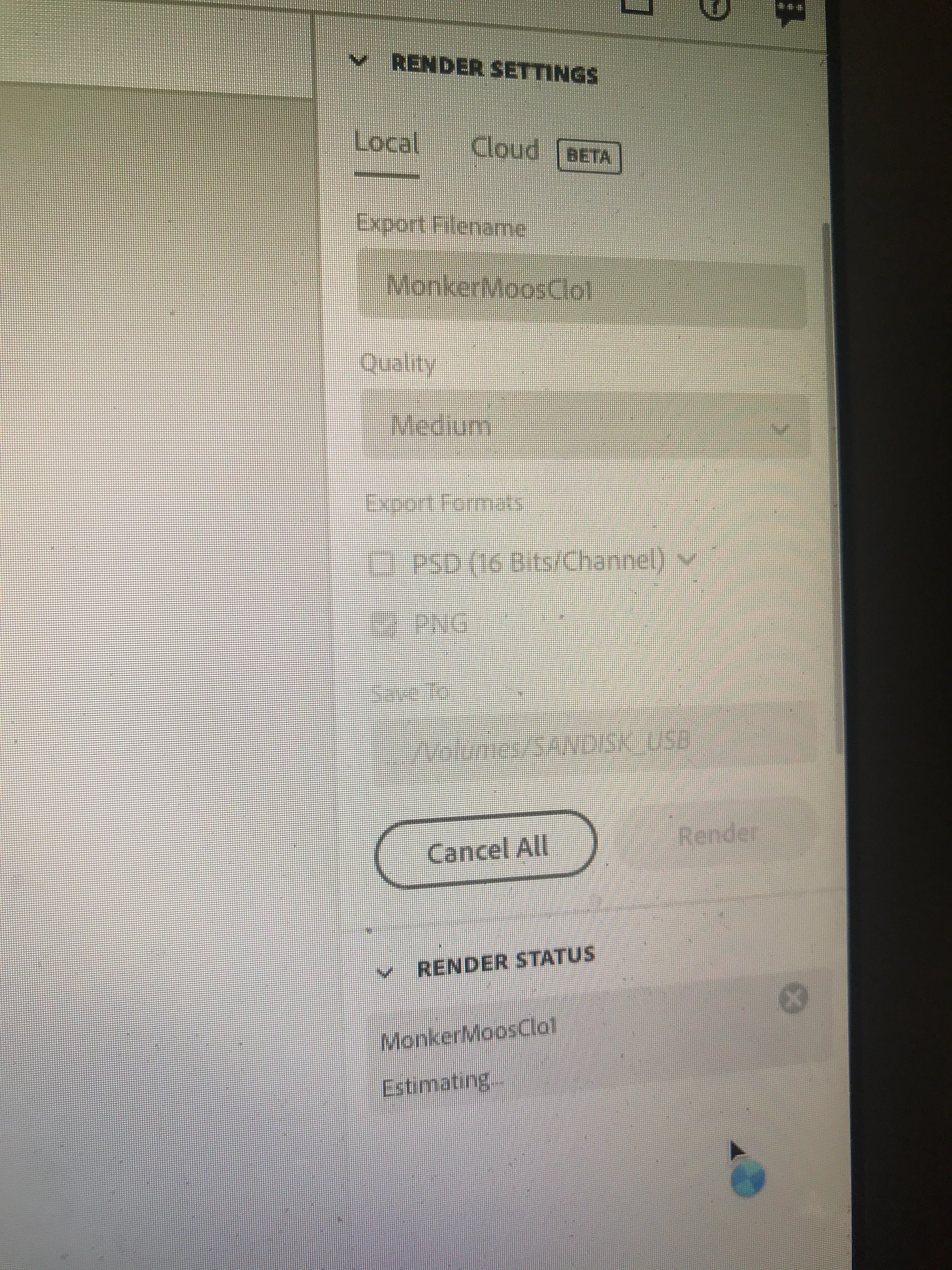 I can't seem to render in Adobe Dimension, I have version 3.1.1. I am trying to render a PNG image and it starts for two minutes then gives me an error. After the error, it keeps trying to render but stills says estimating.