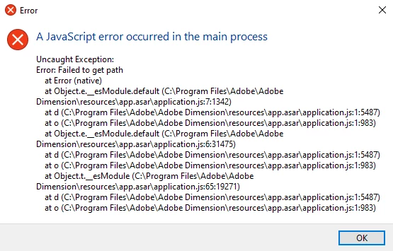 When trying to open dimension (version 3.0 and up) I get this error no matter what. Tried to install and run different versions but the problem still persists. Versions before 3.0 and up run as they should.