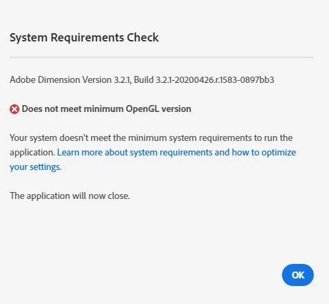 Can't start Dimension 2020