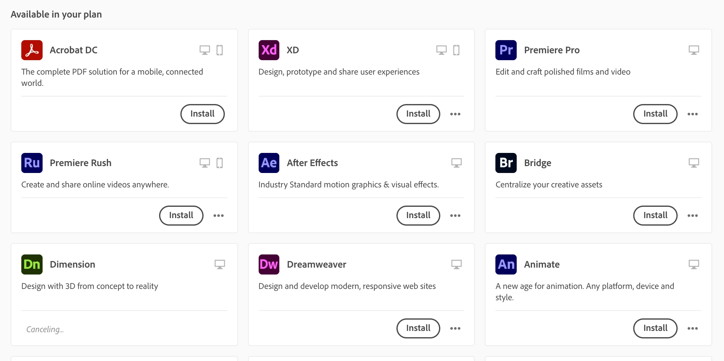 Cancellazione Dimension (Adobe plan)