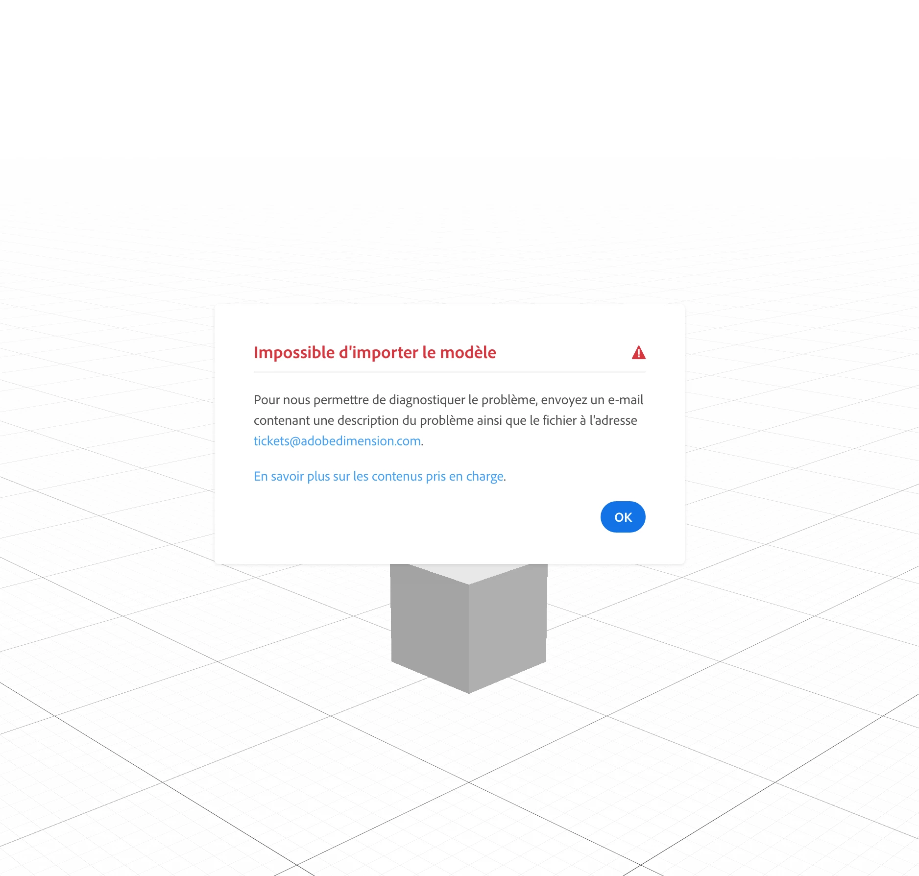 Je commence tout juste à utiliser Dimension et j'y arrive bien mais je ne peux pas utiliser certains modèles prédéfinis (comme la capsule ou le disque et d'autres). J'ai un message : "impossible d'importer le modèle".