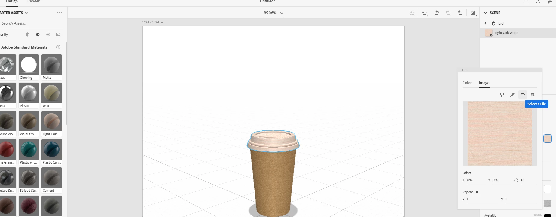 Is it possible to import a 3D object => apply Addobe assets materials => save and close the .dn file => open the .dn file => apply my own materials?