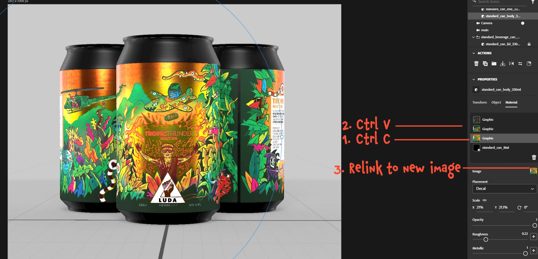I've been using Dimension for a while to create Can Mockups of illustrated Beer Labels.
