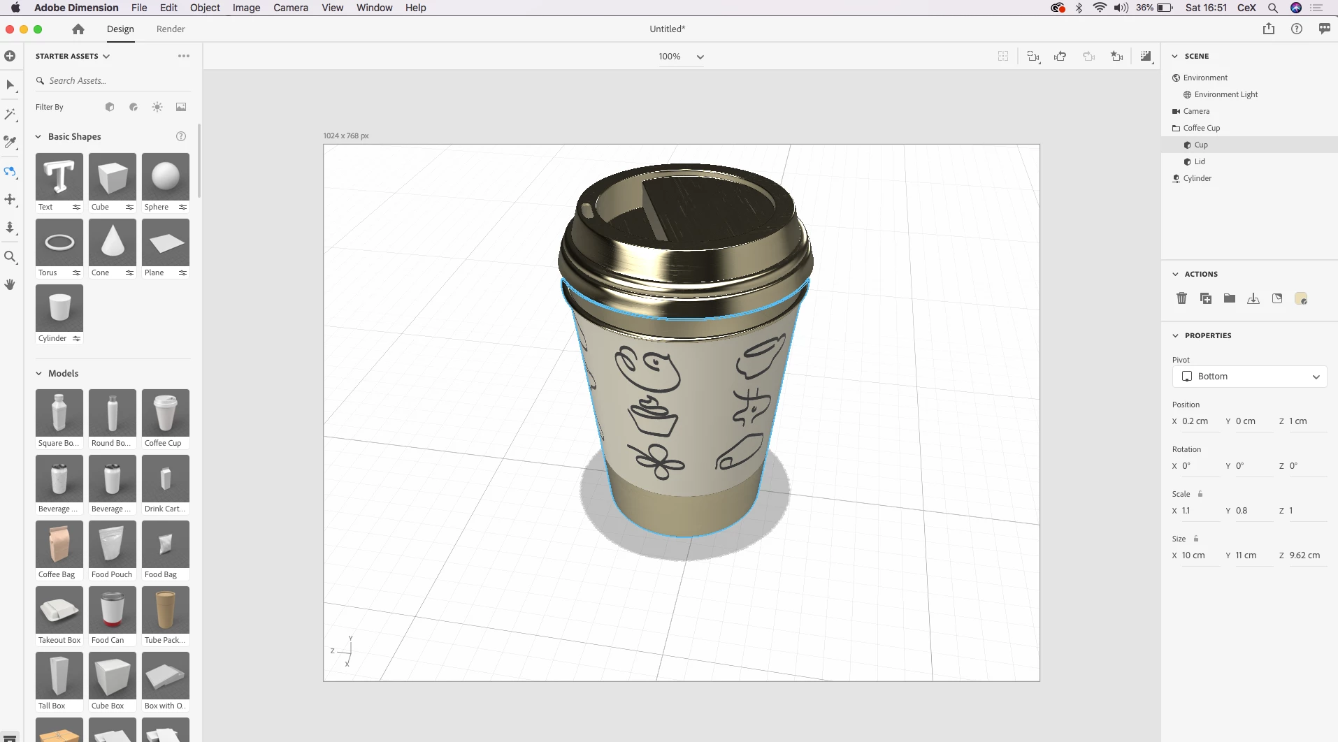 Hi there, i'm using the coffee cup template in dimension to create a mockup for a takeaway coffee cup i'm designing. Is it possible to customise the cup to the exact dimensions i want? I was using the size and scale tools in the bottom corner, but they seem to do the same thing, i just want to edit the size of the radii. Any help much appreciated.