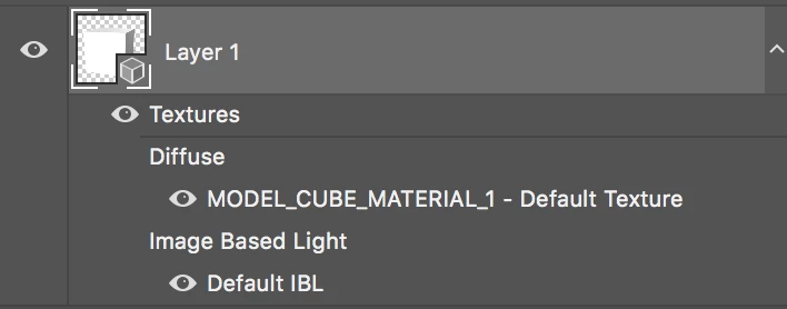 After importing the .obj to Photoshop you'll see a list of textures attached to the 3D model. Double click on the one under the diffuse section. In this example it's called "MODEL_CUBE_MATERIAL_1"