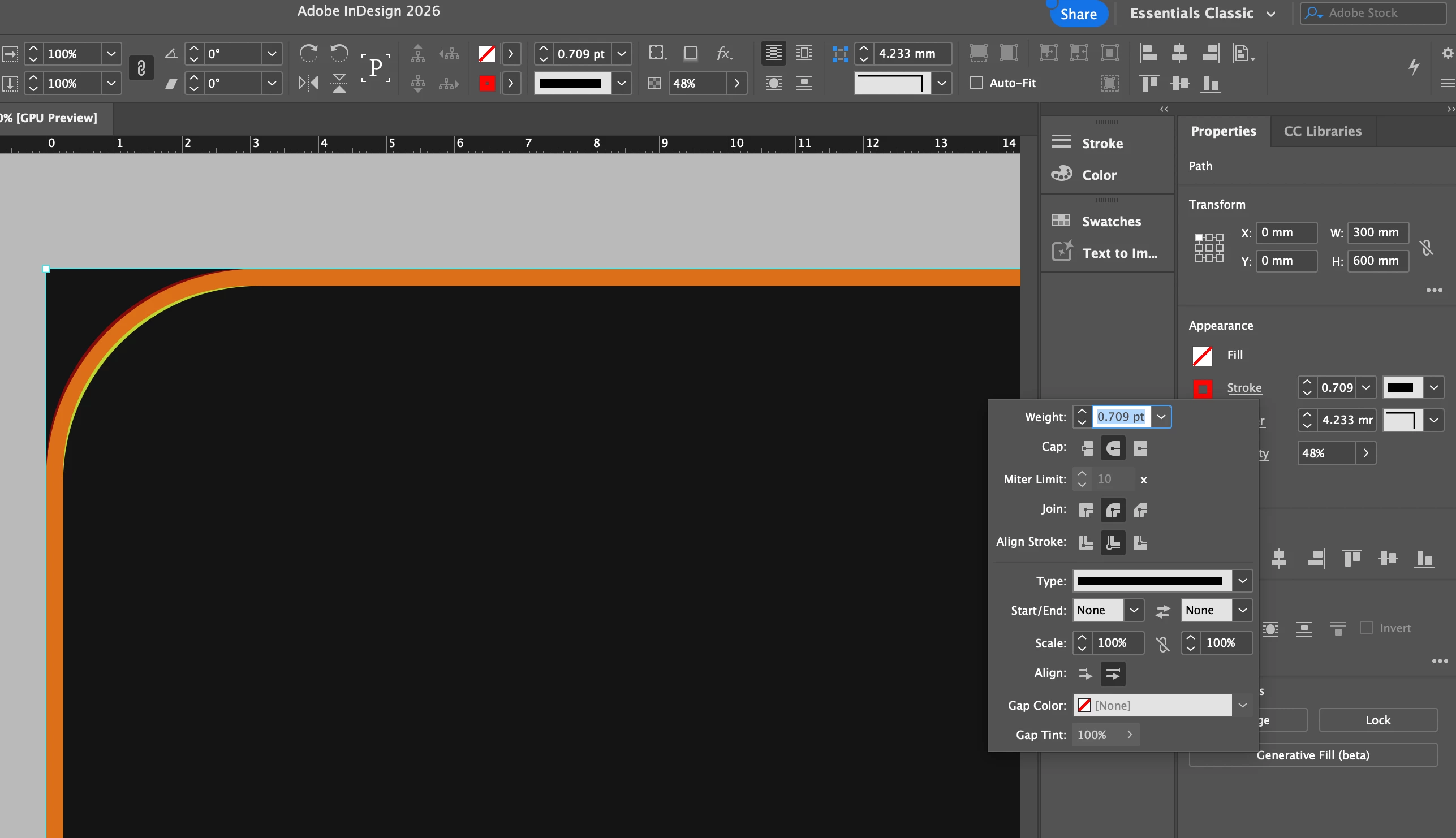 The .dxf dielines that I use are created in Inventor by an Engineer (not myself). When I open that .dxf dieline in Adobe Illustrator, it measures 300 mm width x 600 mm height and has a corner radius of 3mm. The dieline is .709 pt. The stroke is aligned to the center. But, when I copy and paste that same dieline and/or place it into my Indesign file, the dimensions change. The dimensions in InDesign are larger—the dieline measures 300.25 mm width x 600.25 mm height with a corner radius of 4.233 mm. If I align the stroke to the inside, the dimensions change back to 300 mm x 600 mm (which is correct), but the corner radius stays the same, 4.233 mm. I need the corners to be 3 mm.
