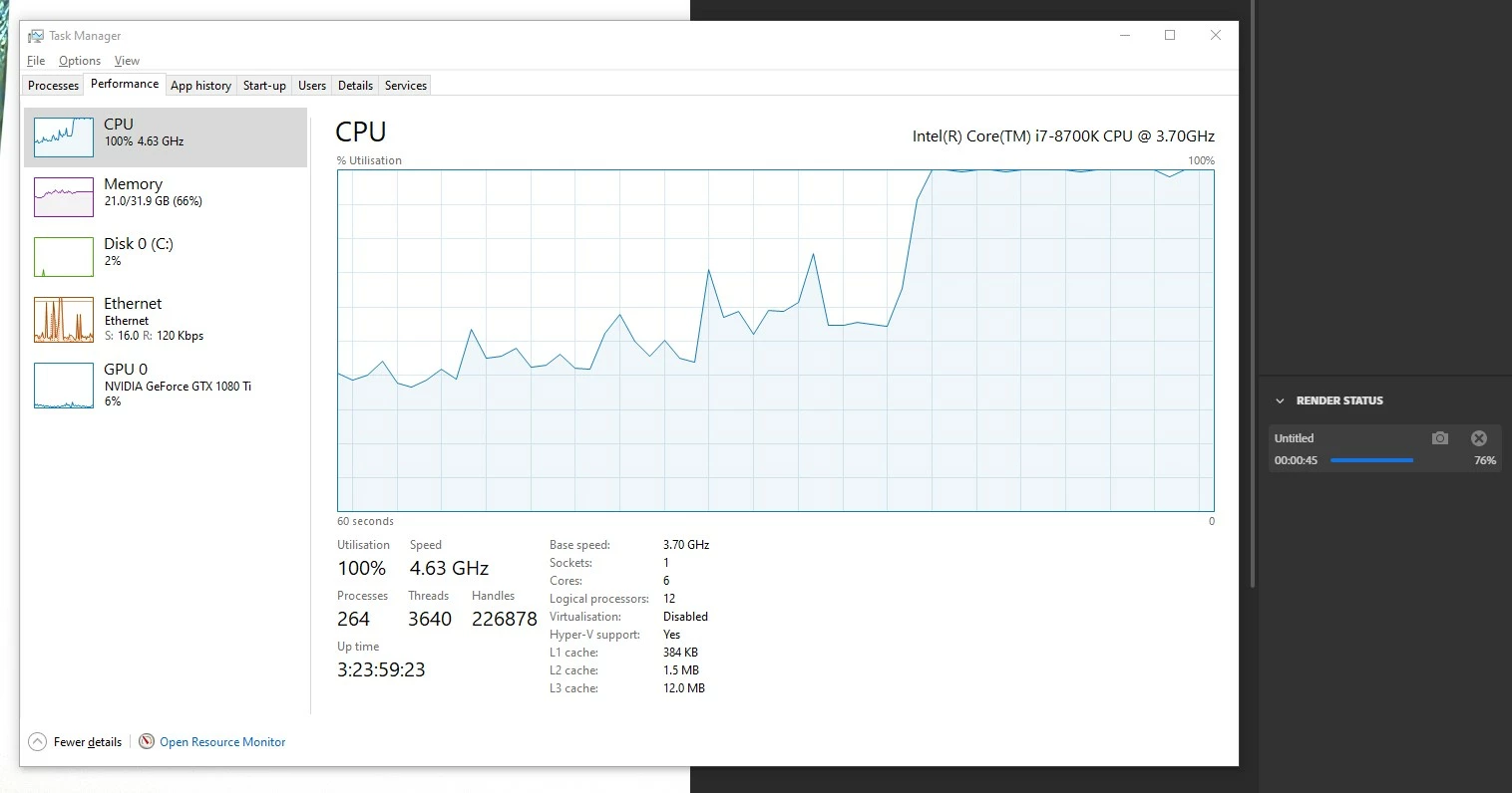 Weird thing as well is that the CPU starts to be at 100% at around 50% only and not earlier.