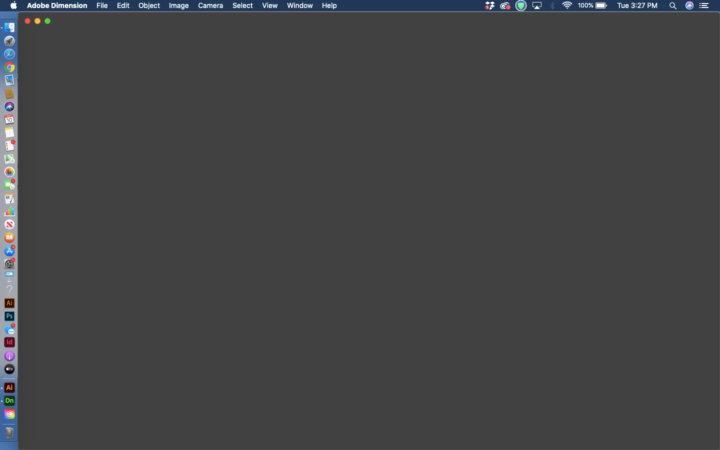 Hello all, when I went to open dimension for the second time today all that came up was a blank screen only showing the x-out, minimize, and elarge buttons at the top right (attached below). I have quit all other adobe apps, tried x-ing out but it does not respond, and retstarted my MacBook Air. I have also tried installing a different version of dimension as well as uninstalling this version although I can not do either because I must close dimension before I do either. Any advice helps!