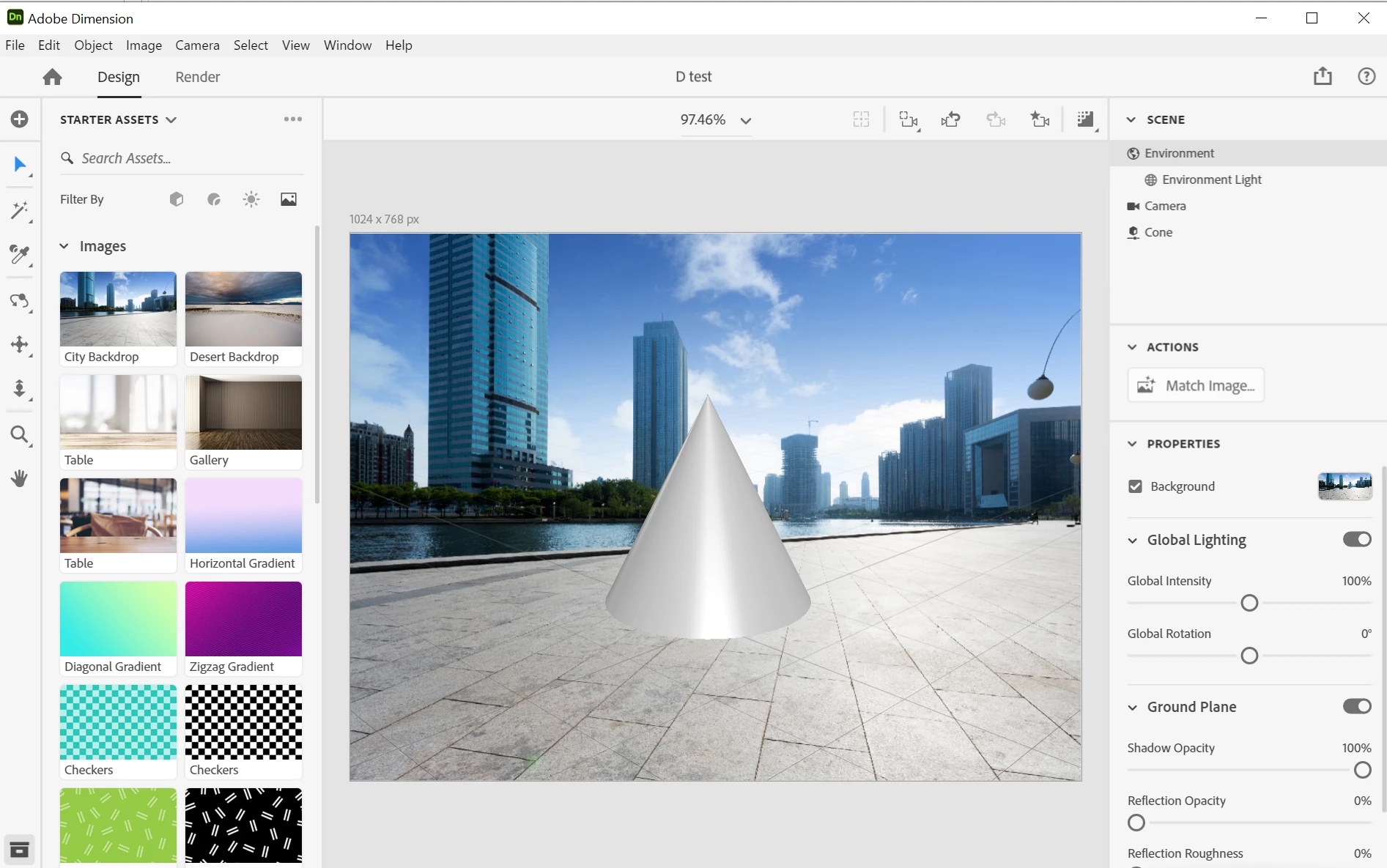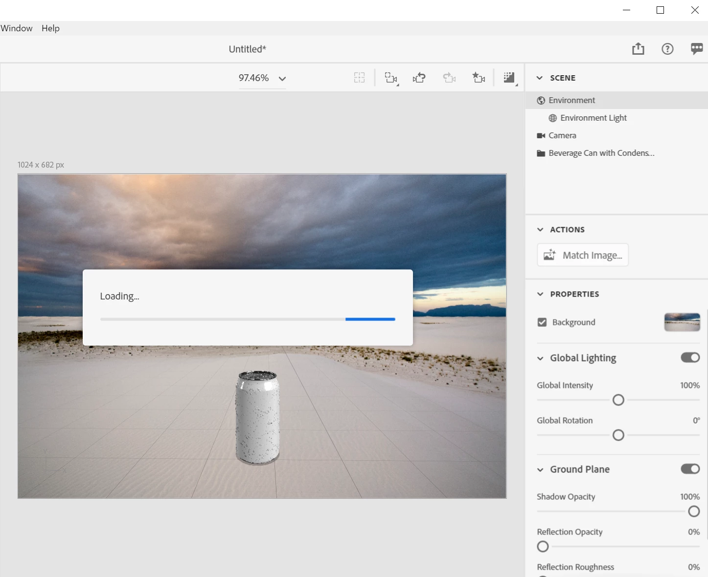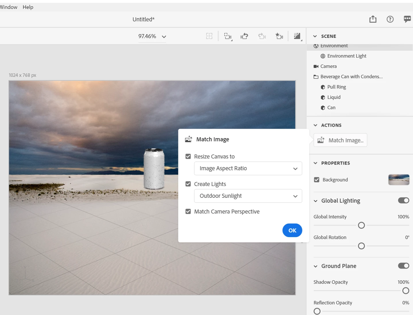 After clicking on the ‘Ok’ button within the ‘Match Image’ panel - match camera perspective etc,