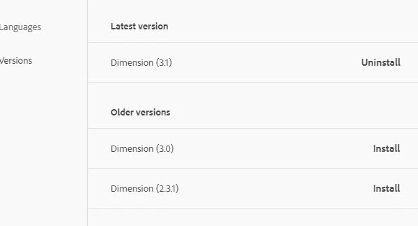 Dimension is installed as ver. 3.0. When i launch Dimension it says "A new version of Dimension is available. Update now." at the bottom. I click update Creative Cloud app launches but it doesn't update Dimension. It shows 3.0. When i go to app (in Creative Cloud app) and click "..." dots icon and select "Other versions" it shows 3.0 as latest.