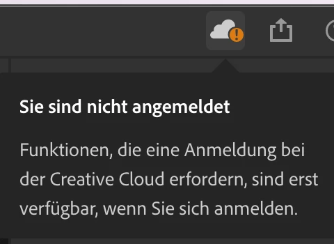 and when opened there was an orange exclamation point on the little cloud symbol telling me that not all features are available If I'm not logged in. How do I log in? I am logged in on my client and in every other program it does it automatically.