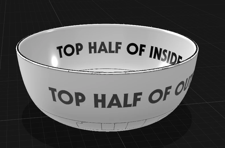 This is how Dimension unwraps the UV map for a basic bowl created in Illustrator.
