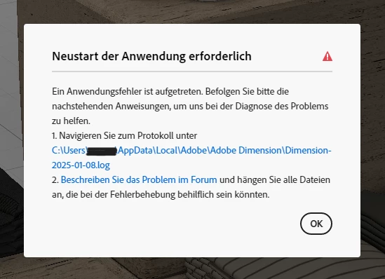 multiple colleagues run into error messages at each startup of Dimension version 4.0.4.