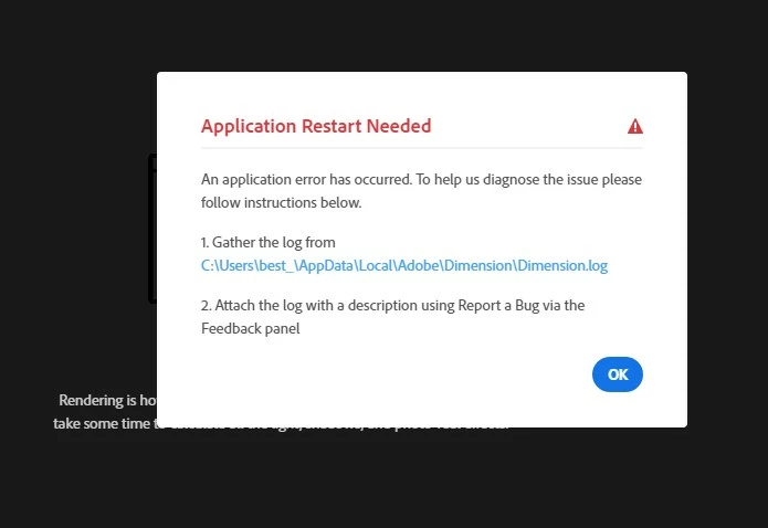 Kkao9HsParticipantForum|Forum|3 years agoMay 9, 2022QuestionHow to fix Adobe Dimension : Application Restart NeededForum|Forum|3 years agoMay 9, 20221 reply553 viewsHow toProblem or error