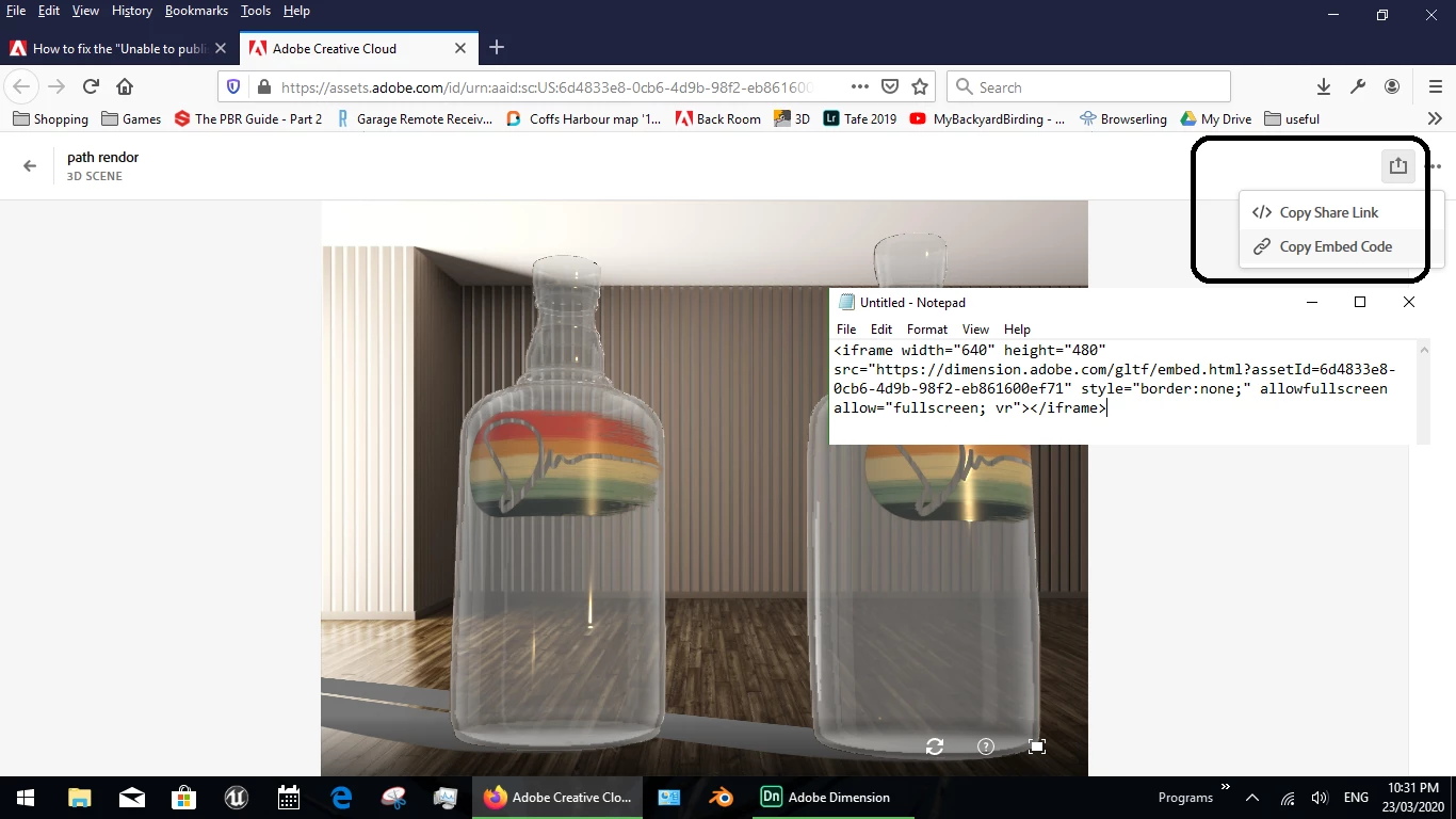 - now for adding the [poor rendor] image to a web page you have two basic options, which you are best to do from the browser UI not Dimension itself