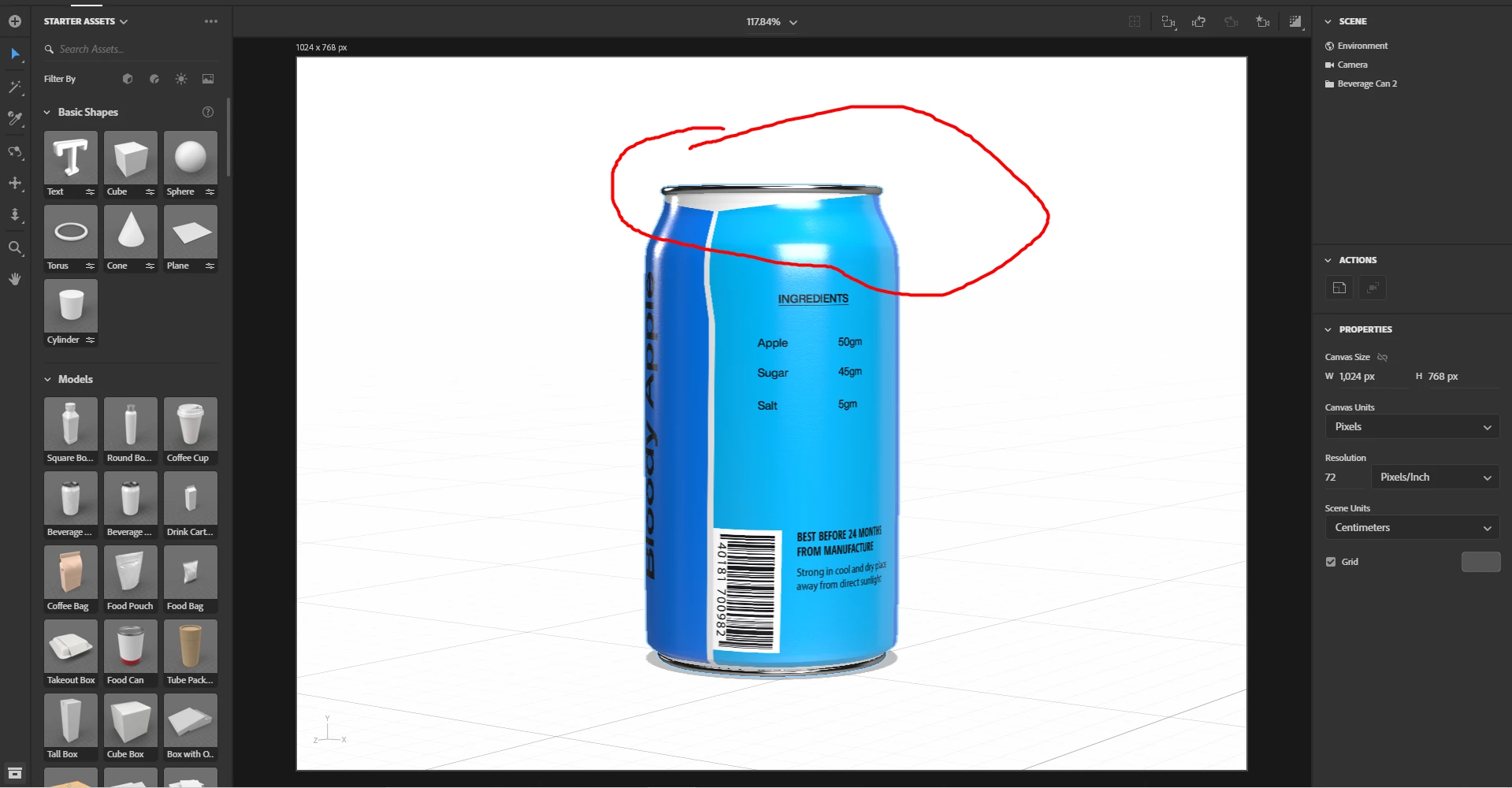that image is a decal so the first thing you need is to use a fill instead... then I would select just the outside edge of the can with the magic wand so you can export the Uv map needed