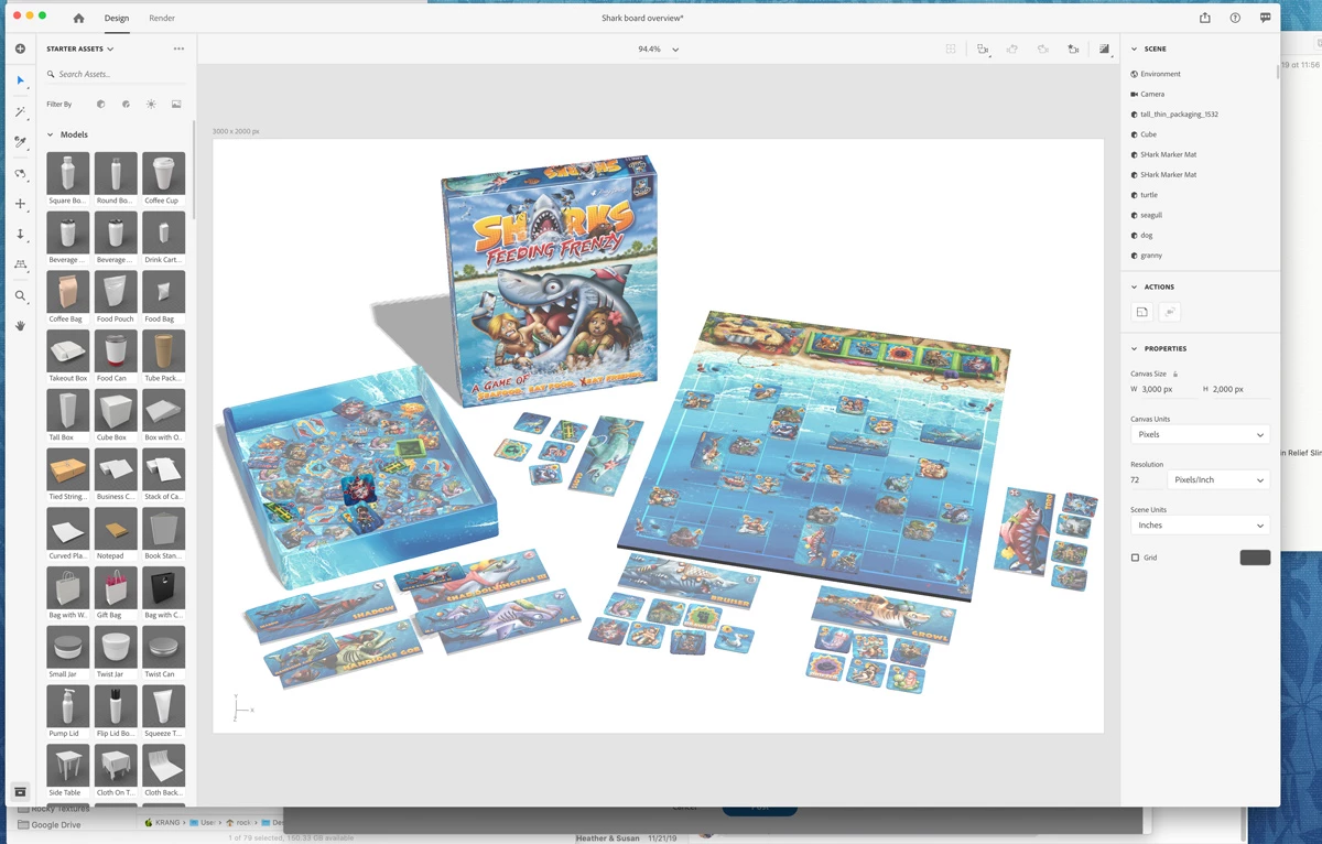 I'll attach a screenshot of the scene I'm trying to render. It's a board game layout. Do I have too many graphics? They are all formatted for web, so all the little tiles are only like 400kb images. The board and box are like 7 and 10mb.