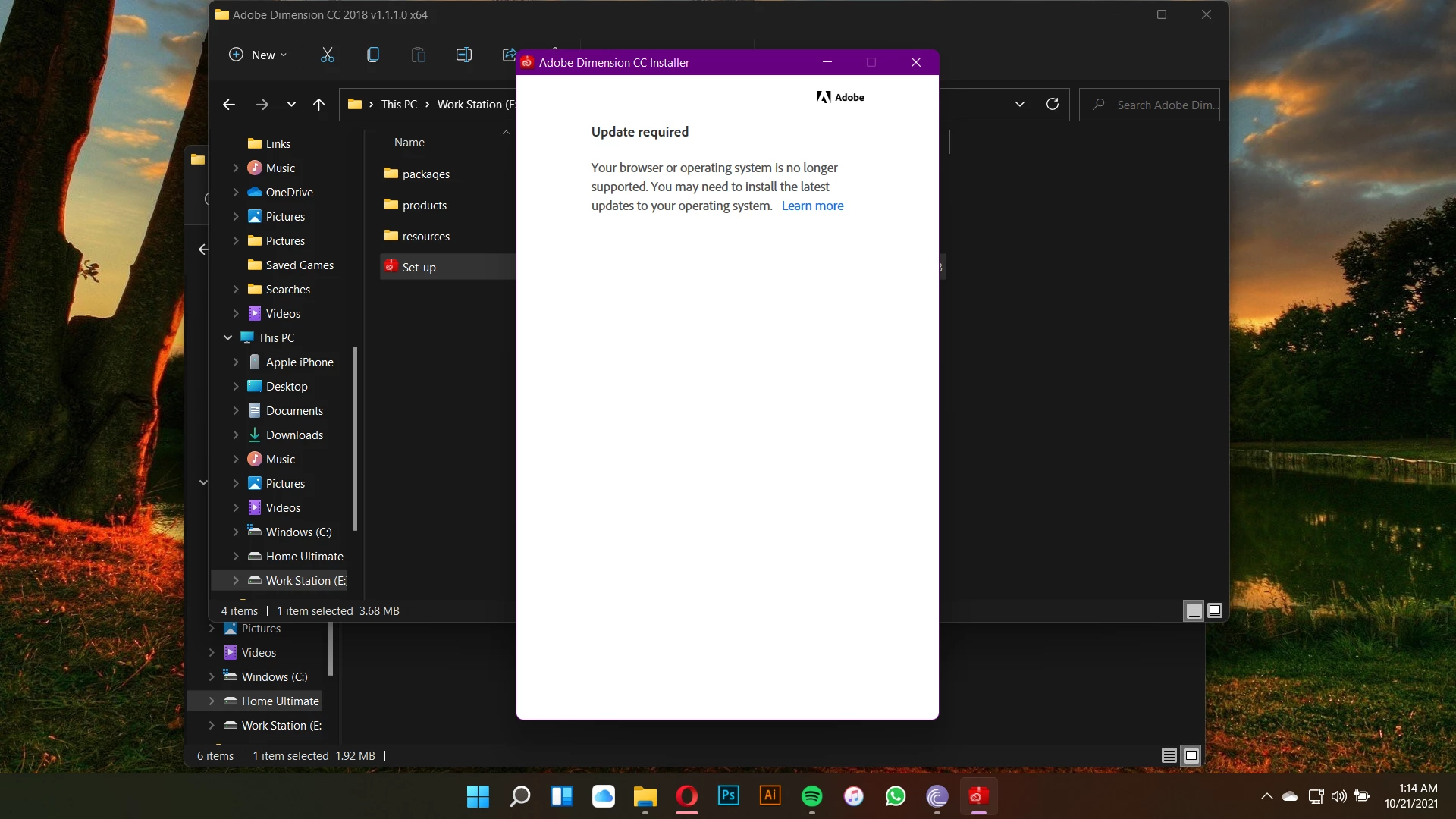 MModern MactonishParticipantForum|Forum|4 years agoOctober 20, 2021QuestionI can't Install Dimension CC 2018Forum|Forum|4 years agoOctober 20, 20211 reply212 viewsI can't Install Dimension CC 2018, Why this message ? "update required adobe your browser or operating system is no longer supported". How to fix it please help me. Thank youHow toDownload and installCrash or freezeProblem or errorWindows