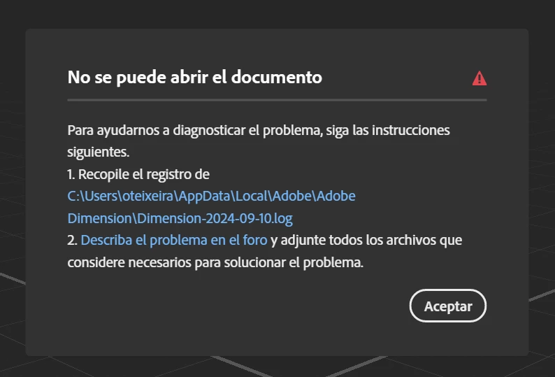 I was doing the design for a place, I saved and rendered yesterday, today I try to open it and adobe dimension says that this file cannot be opened, I attach the log