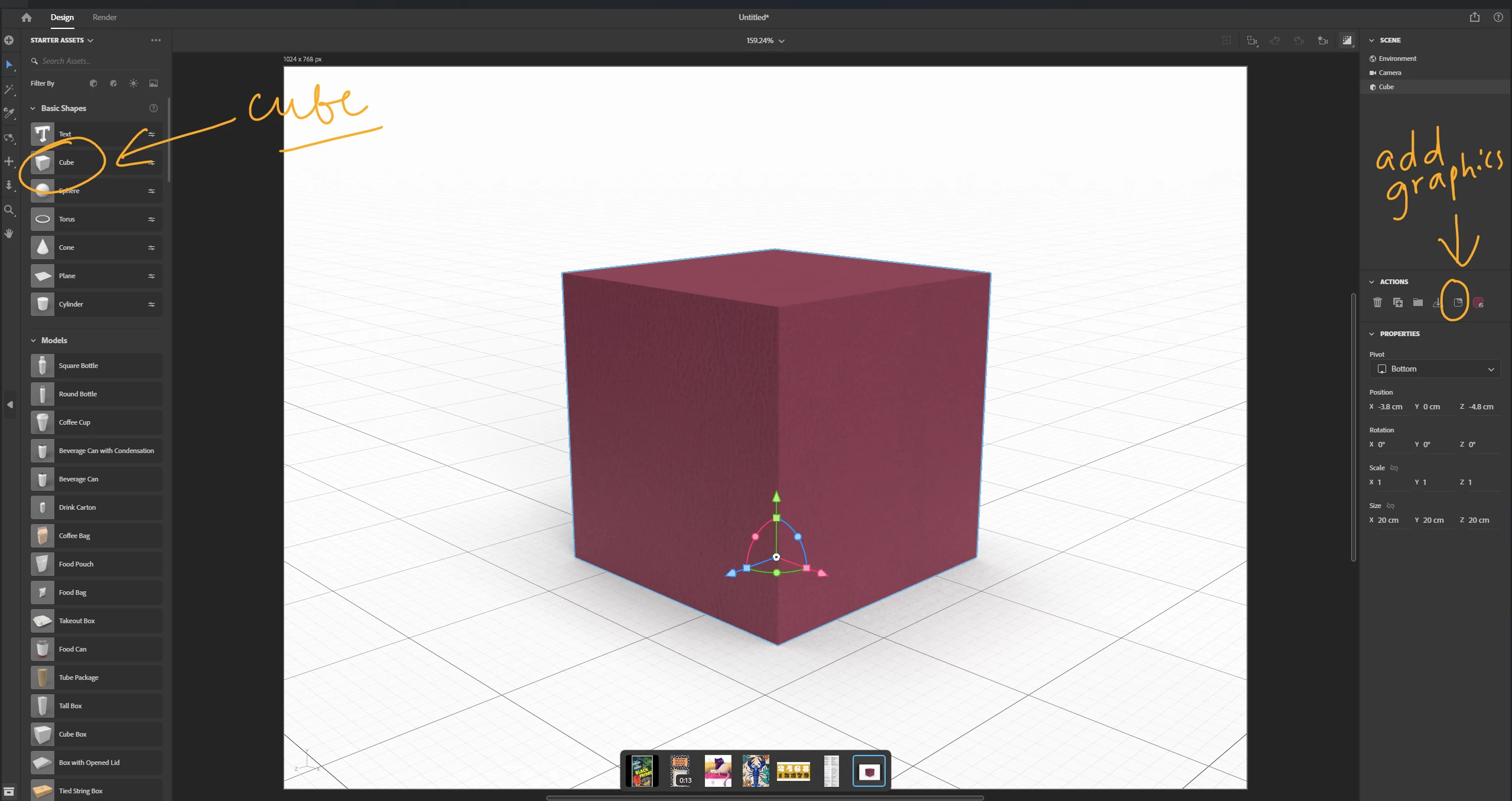 I need to create a 3d cube with text on one side