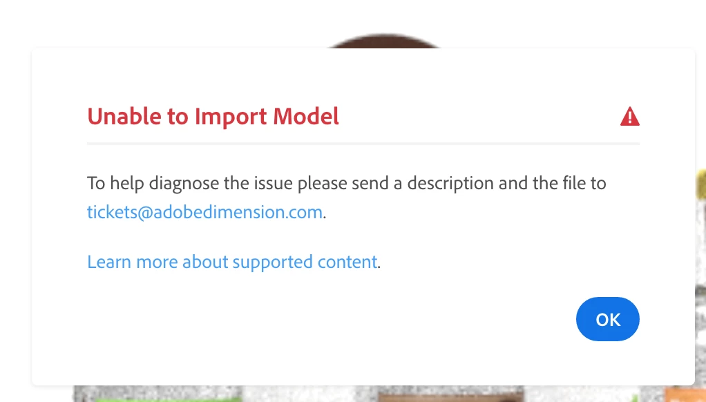 I'm having an issue with an Adobe Stock file I licensed and importing it into Dimension. I'm able to import other 3D models into Dimension with no difficulty, including other licensed models from Adobe, but when it comes to this specific file it won't upload. Has anyone else encountered this and do you have a workaround? Or do I need to request a new file/refund?