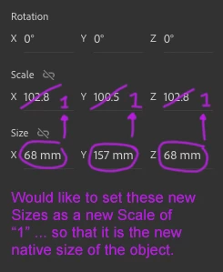 - Is there a way to re-size an object in Dimension... and then set that new size as the Scale of "1" for XYZ?
