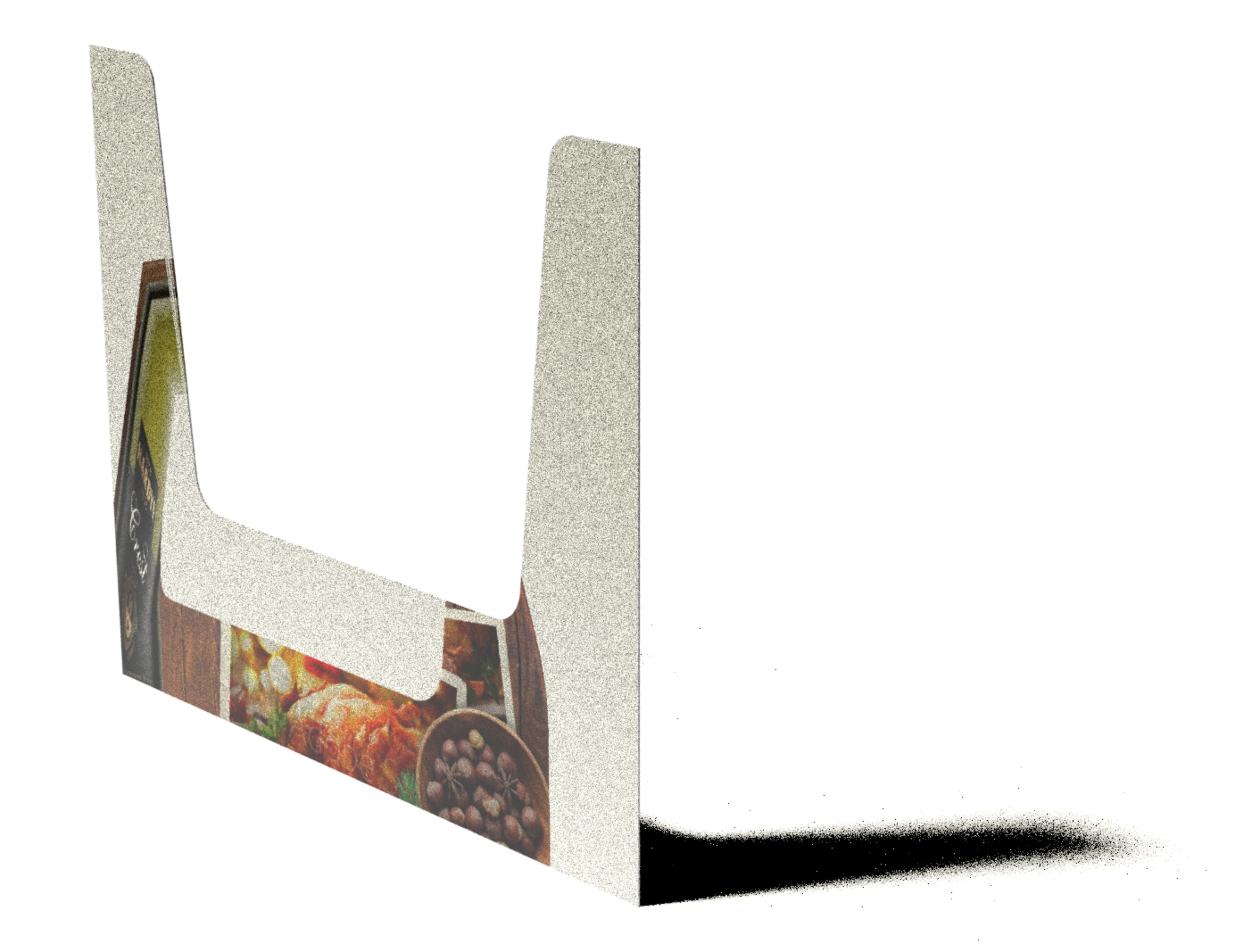 The graphic is exactly the same size and shape as the model (tried as transparent png and jpg), so it should perfectly cover the whole side. Instead it is being distorted by an invisible diagonal line between the bottom corners and the internal curves.