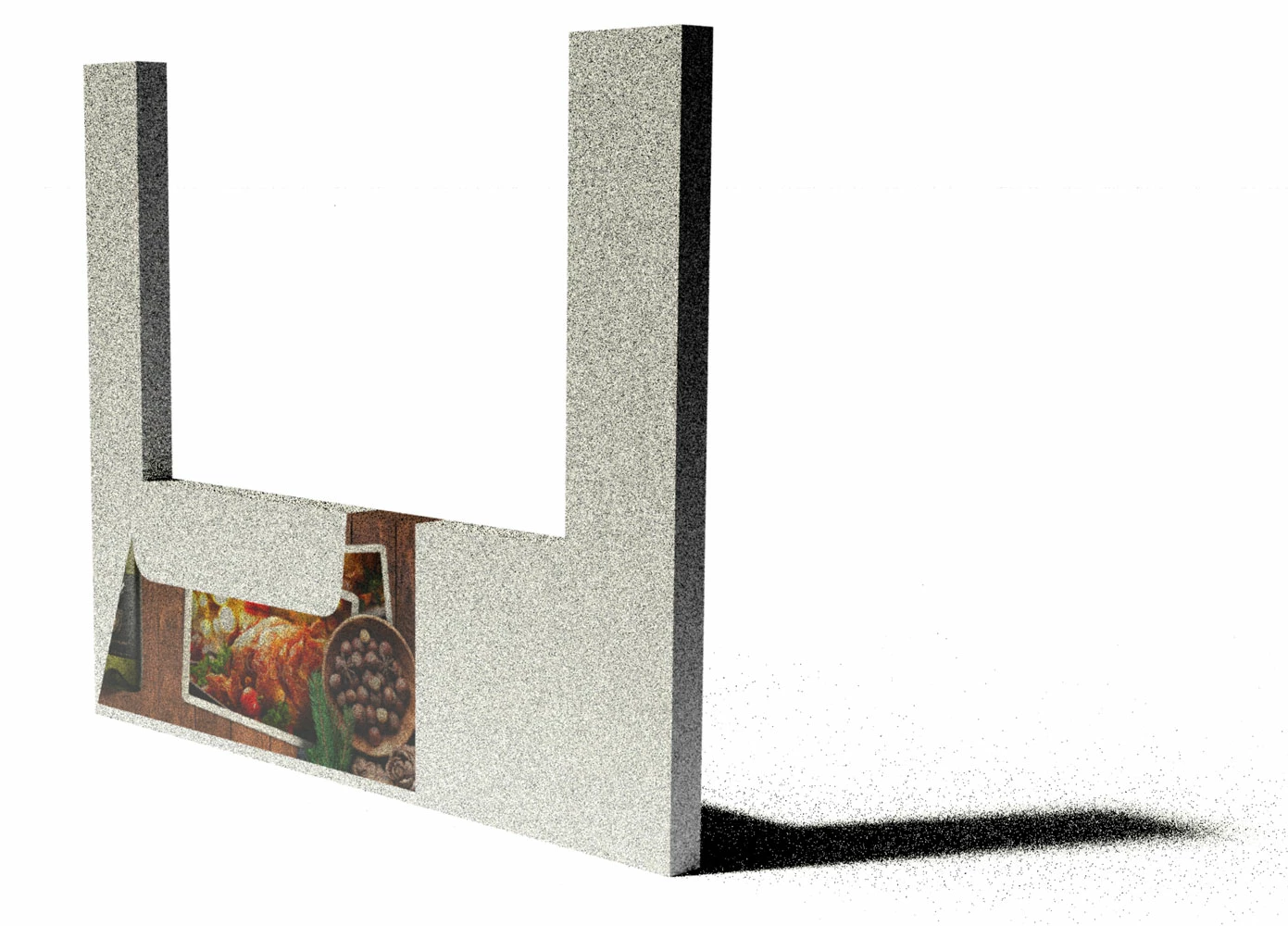 The below image is part of a model from Sketchup. It has a deep cut which is seemingly affecting the way the graphic behaves when applied.