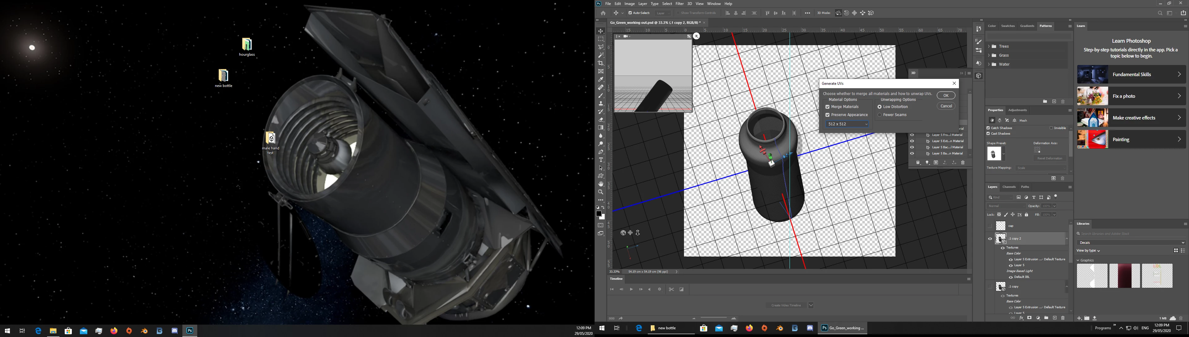 tip, make your bottle round i.e, X + Z = the same... not almost ime doing this in Photoshop gives better results than trying to fix it later