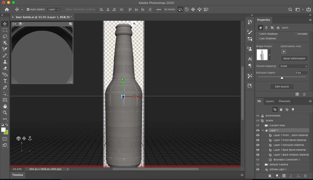 Hello I followed this tutorial to create a bottle as an OBJ in Photoshop: