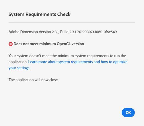 On restart, it installed a Windows update and I’ve not been able to launch the app since without getting the ‘Does not meet Open GL requirements’ error message, and says the application will now shut.