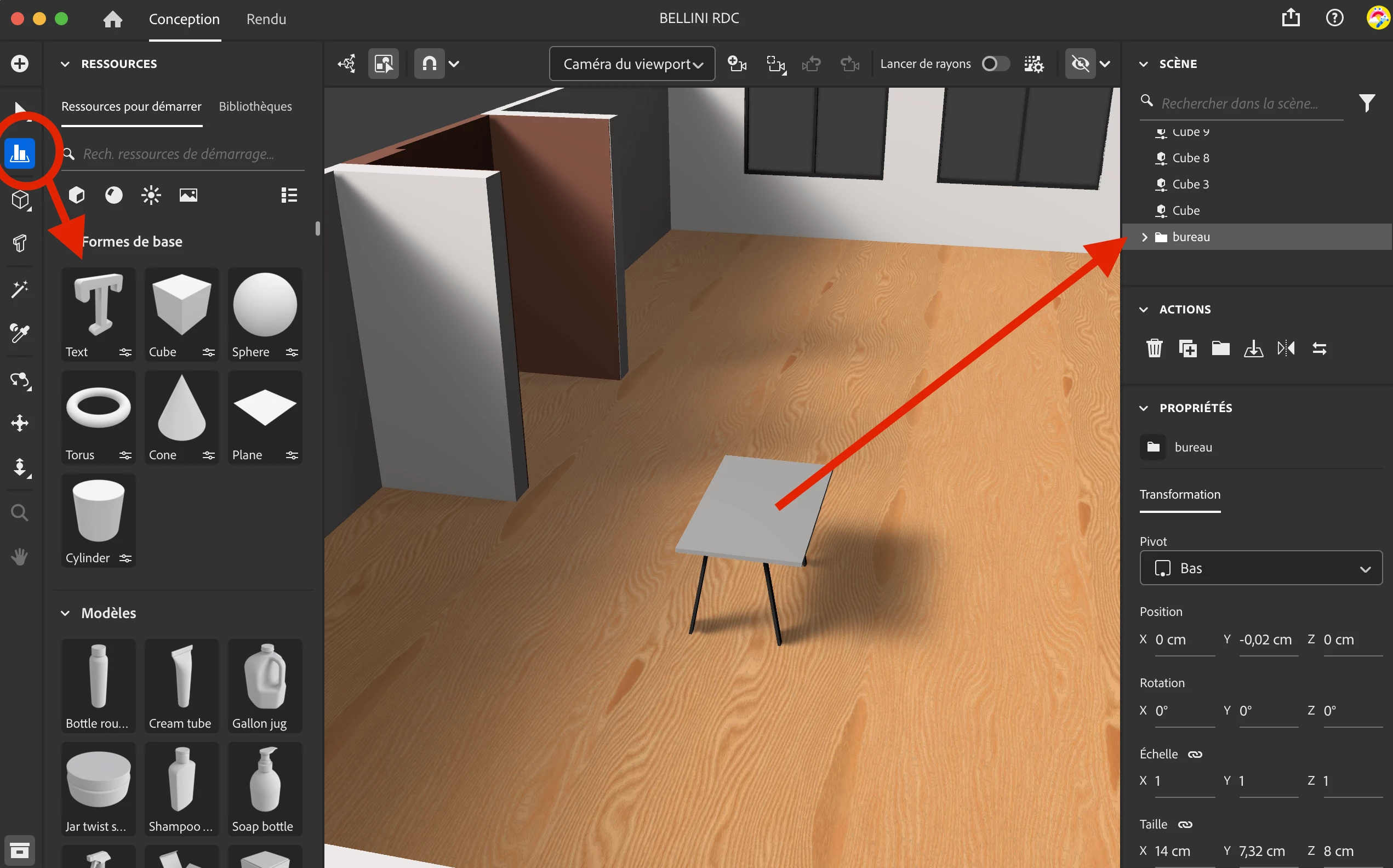 Un screenshot ajouté pour montrer mes 2 pb, le bureau est selectionné mais pas de poignées et le menu alignement est activé mais pas de fonctionalité apparentes....
