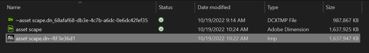 Recover Dimension file from a .tmp