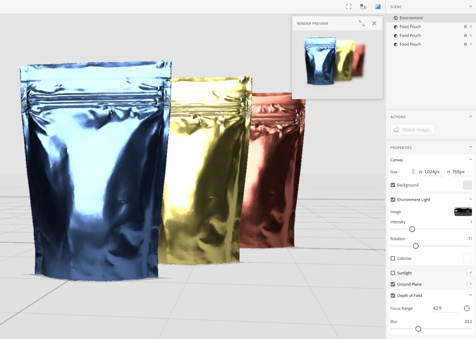 Be sure to turn on the Render Preview (top right of the canvas has controls for this). Depth of Field can't be previewed in the canvas, so it's important to look at Render Preview for lighting, reflections, and other effects before rendering.