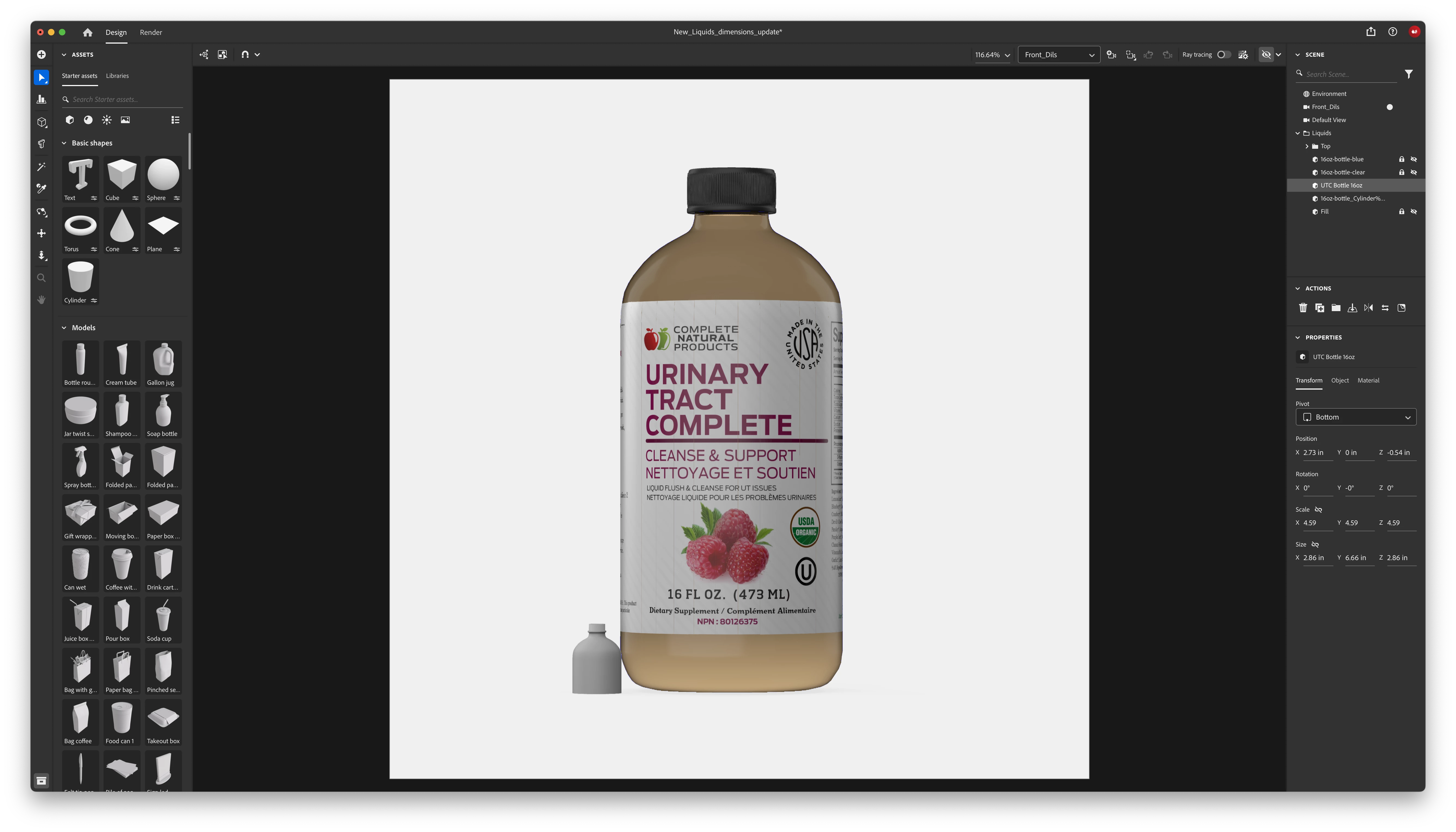 I read a thread about vertical lines appearing, and played with the UV, and re-importing the .obj file (bottle) without any success. The label that I could place anywhere on the bottle now only give me small real estate, and cut my label.