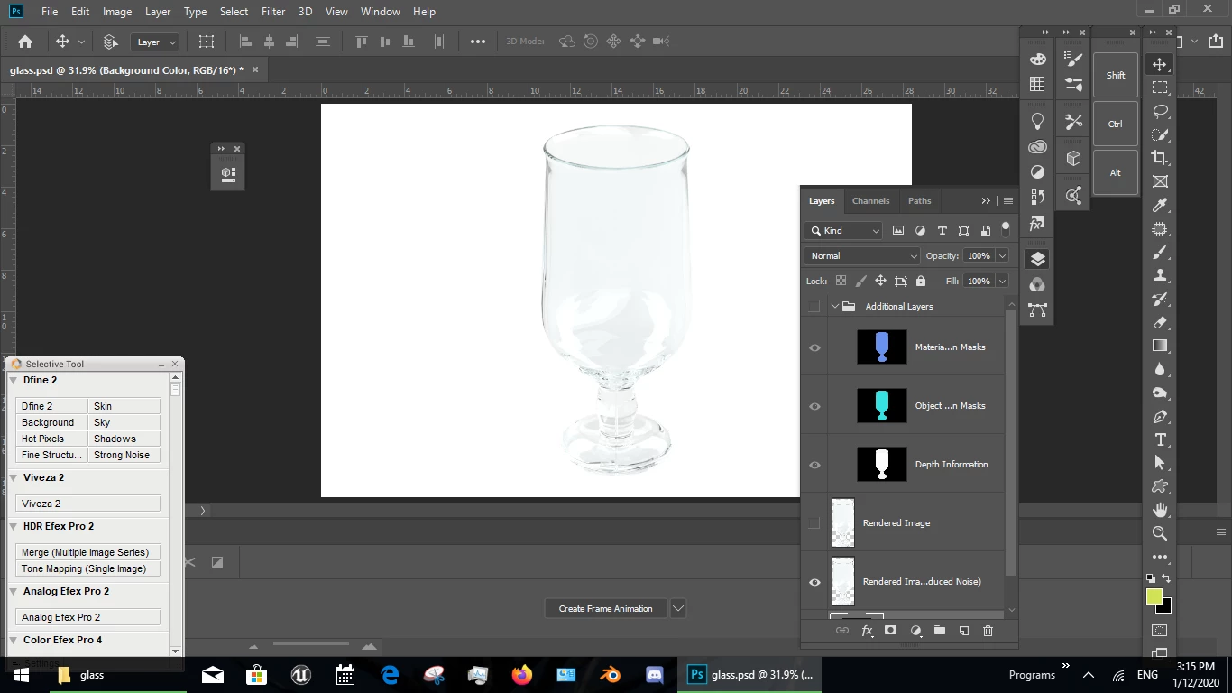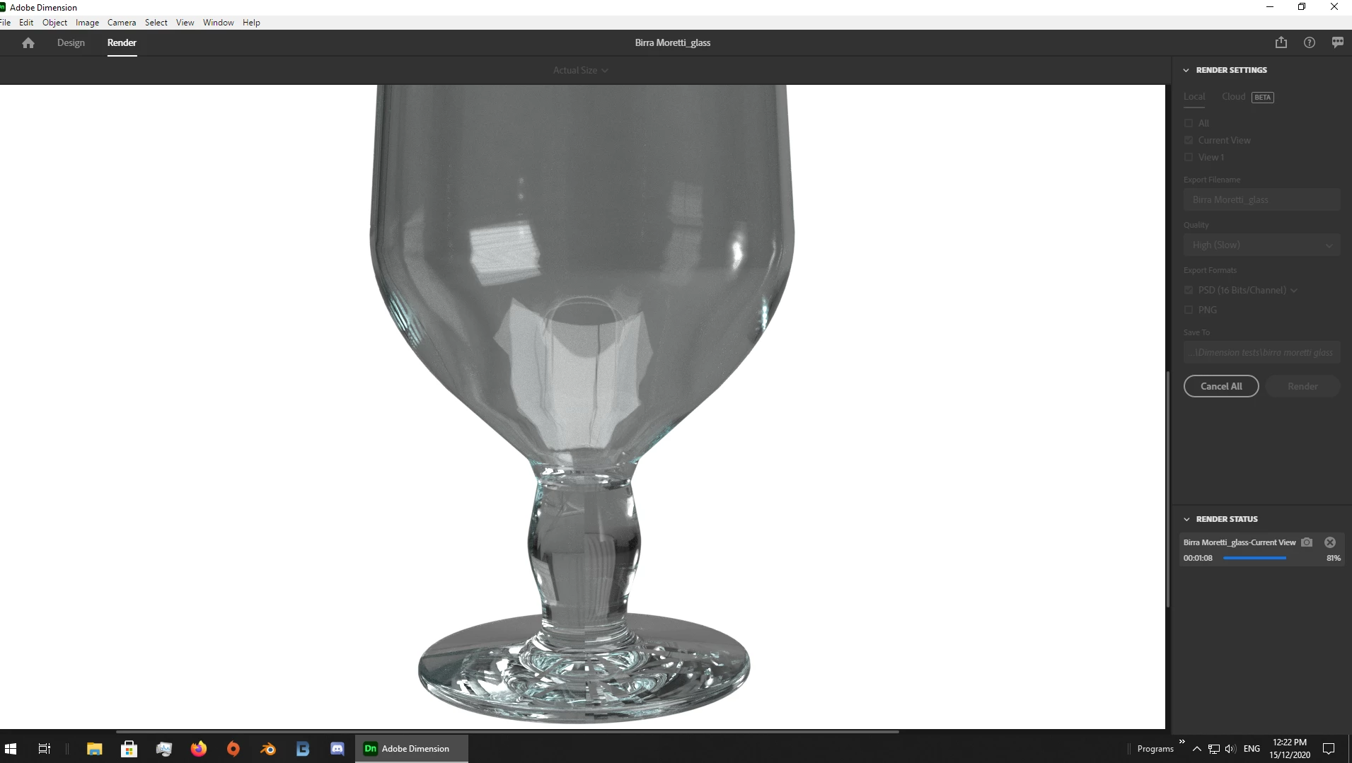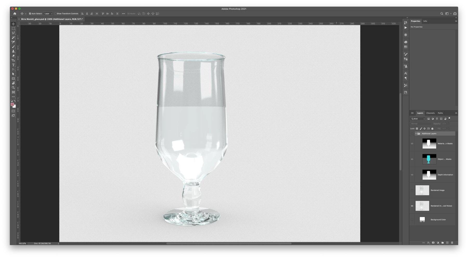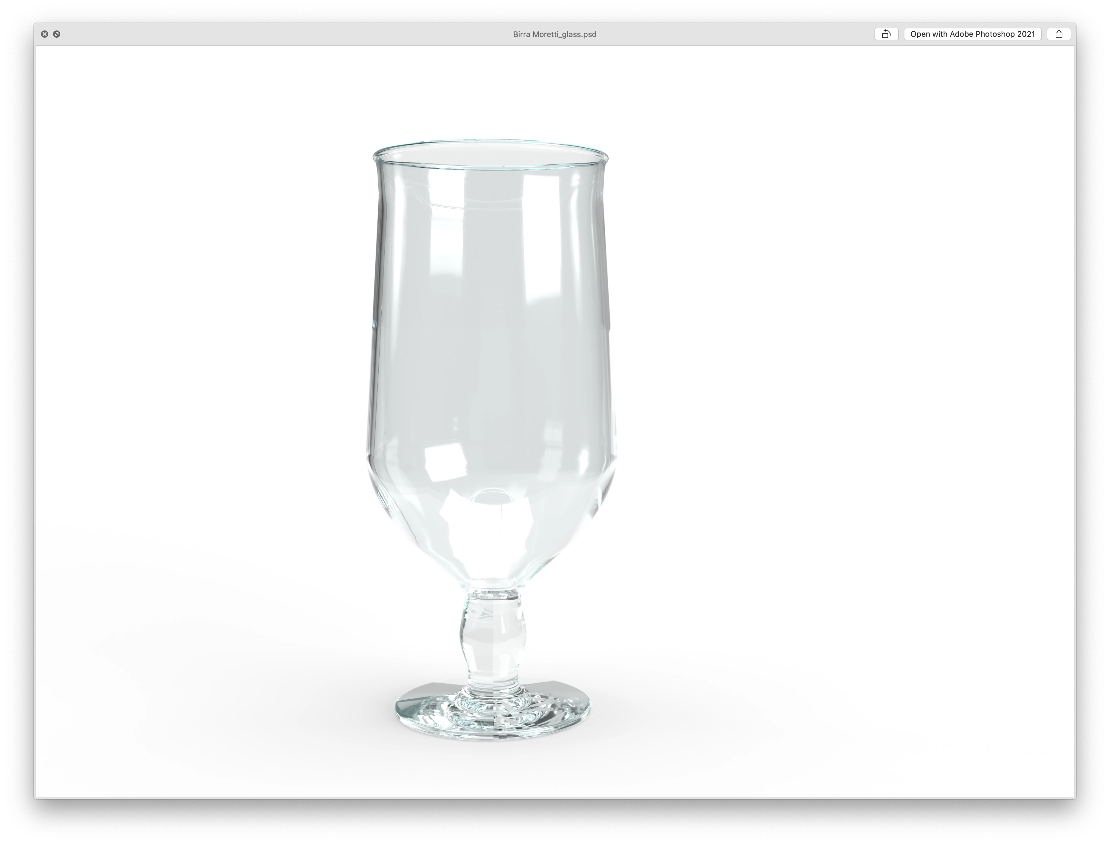 When I render my object from Dimension to a PSD, I'm getting a strange result. The preview of the PSD looks fine, but when you open it, only half of the glass is transparent When I export the PNG, it's fine, but I need it to be transparent.