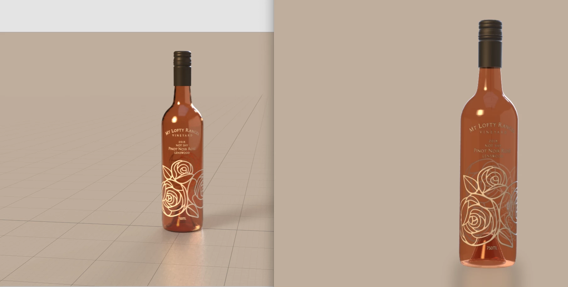 I am trying to create a live 3D scene of a clients wine bottle, to send to them for approval before production.