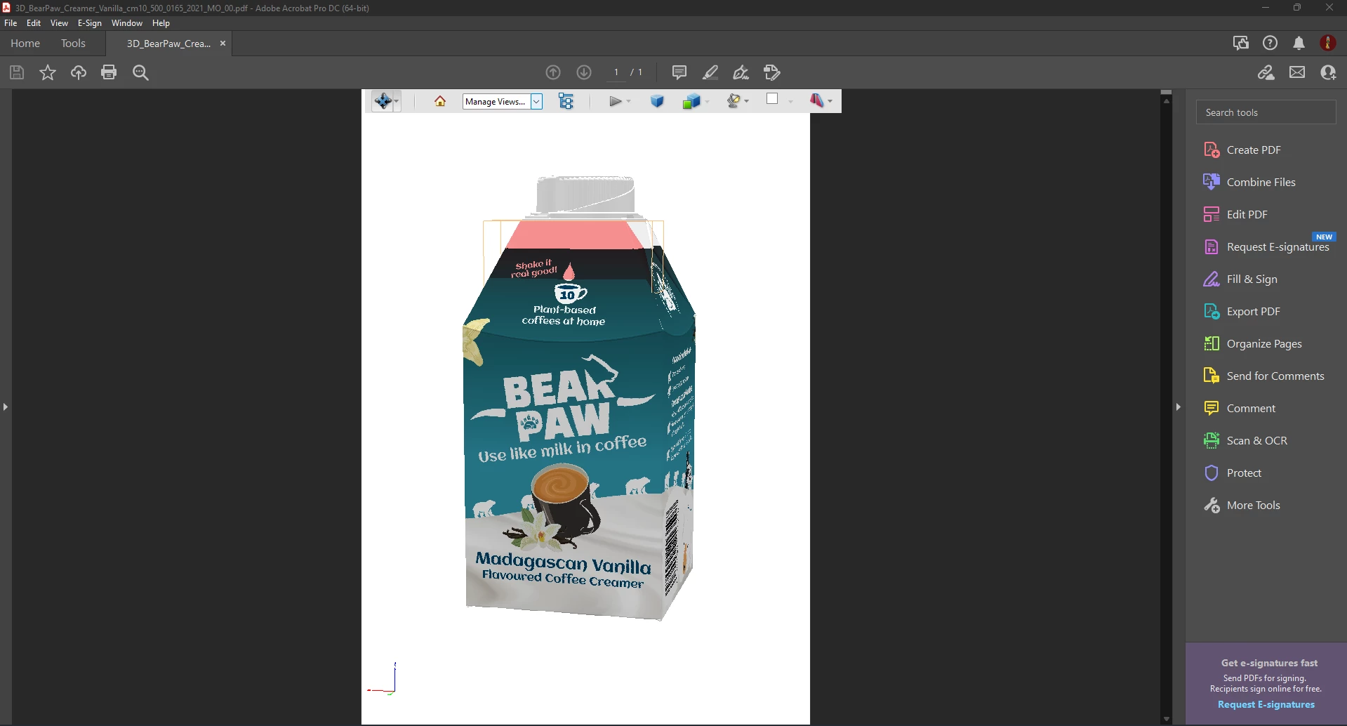 I have a 3D PDF of my product. It is an awkward shape carton. I know there are versions of this carton that you can apply artwork to in Dimensions, so I assume this is the best option.