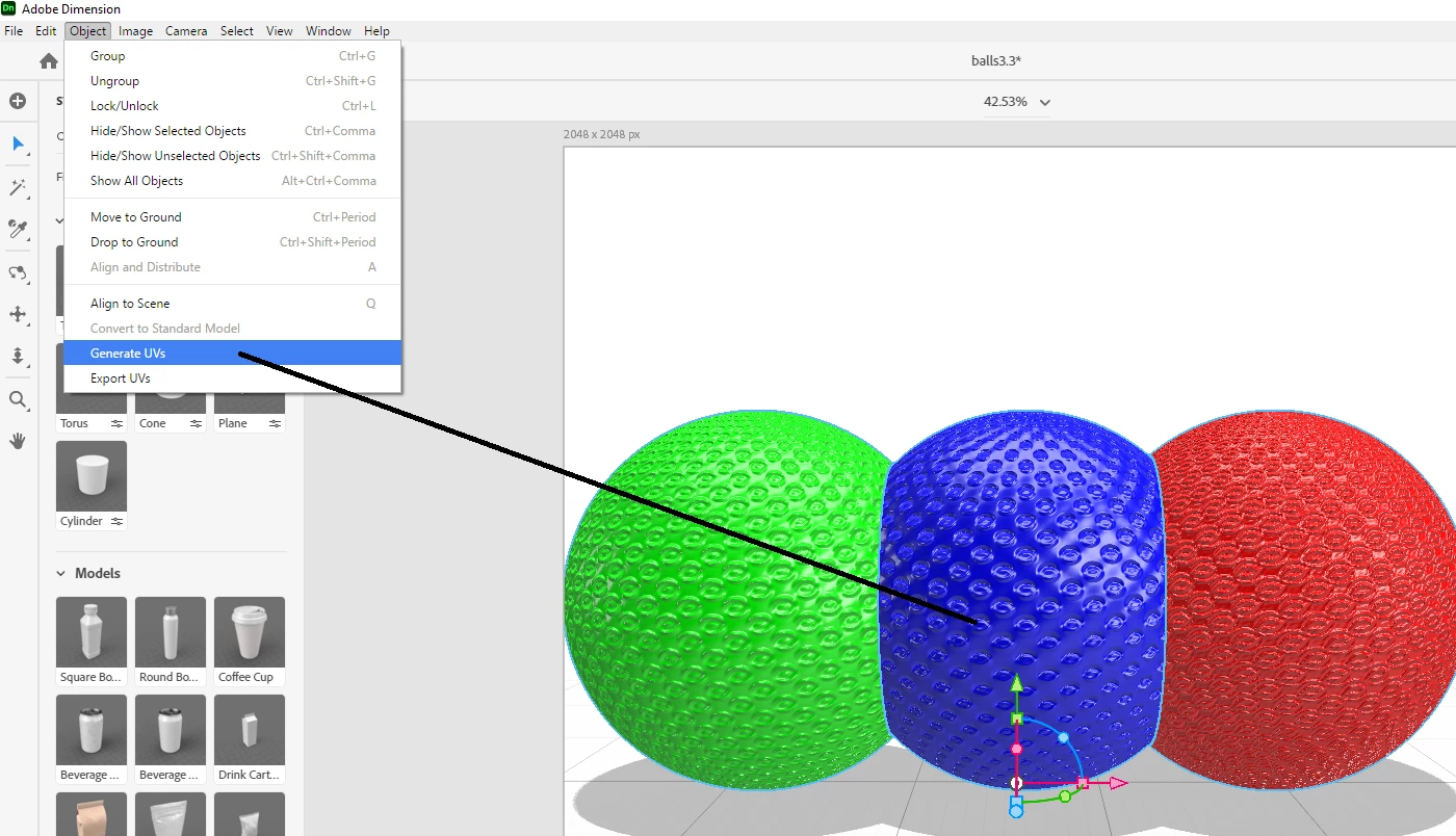 Hi. I'm new to Dimension. I installed it today and did a few tutorials, and now I am trying to overlay a graphic on a sphere model. The graphic is my own file that I made in Photoshop. It is a png file. I'm following what sure seems like the right menu path, but nothing happens.