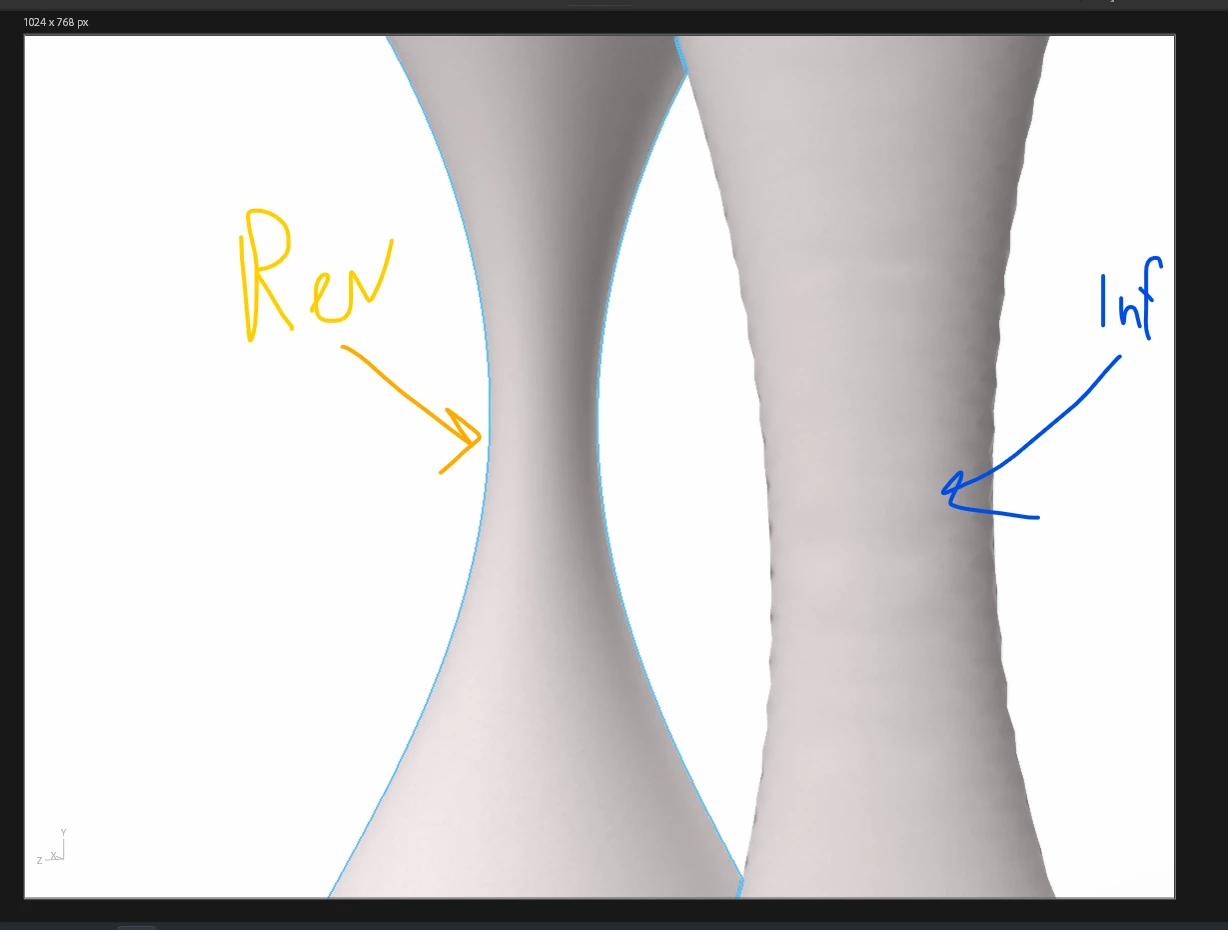 I've drawn these flower stems in illustrator with the pen tool, converted to 3d in illustrator and then imported into Dimension. The stems are thinner in the middle and wider at the bottom. As you can see, the widest parts are very smooth but the more narrow parts are not. They're all weird and jagged.