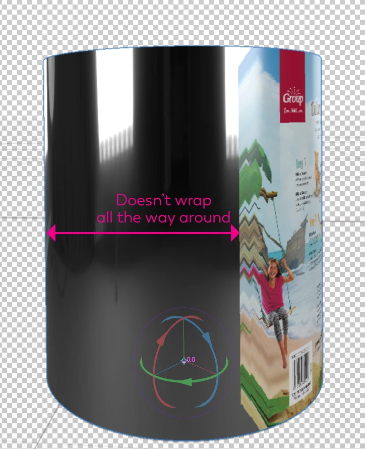 Does anyone know how to get art to wrap all the way around a cylinder? I dropped art on a cylinder and it will only wrap 3/4 of the way around.