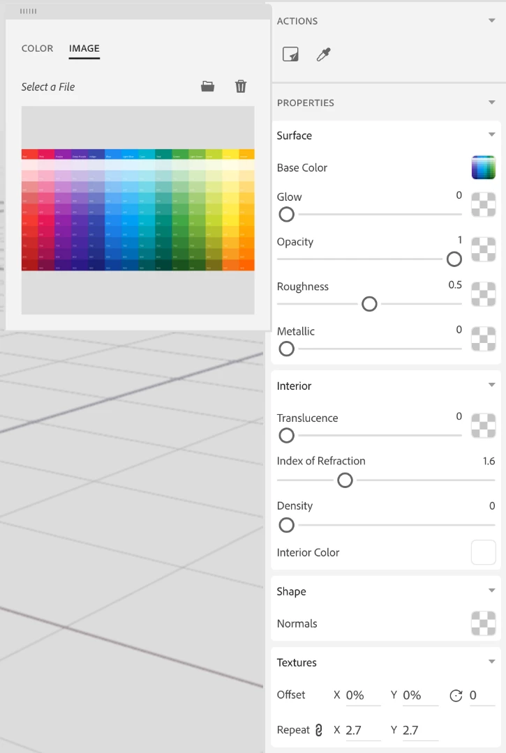 Hmm, it turned grayscale in the color channel? If you put it into the roughness or metallic property it would be auto-grayscaled but it shouldn't in the base color channel. Feel free to package your content and send to me to take a look if you'd like. For controlling the scale at the bottom of the material properties there are options for offset, repeat, and angles.